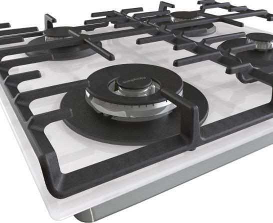 Современный стиль конструкции выделяется лаконичным белым цветом и закаленным стеклом, которое легко поддерживать в чистоте и которое придает кухонному пространству аккуратный и свежий вид. Эмалированная панель конфорок сочетается с прочными чугунными решетками, обеспечивая надежную опору для посуды любых форм, включая специальную подставку WOK в комплекте для интенсивной работы с крупными сковородами. Скошенные кромки и отсутствие рамки создают эффект единой поверхности, вписывающийся в интерьер минималистичного или современного оформления; толщина столешницы для встраивания должна быть не менее 30 мм, а размеры ниши — 100x560x490 мм, что упрощает монтаж и позволяет сохранить целостность рабочей зоны.