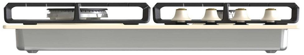 Современный внешний вид соединяет в себе стеклянную варочную зону и элементы из нержавеющей стали, создавая эффектную комбинацию слоновой кости и металла, которая выгодно оттеняет любую кухонную поверхность. Низкопрофильная конструкция высотой всего 13 см и шириной 60 см позволяет установить прибор вровень со столешницей, обеспечивая аккуратный, минималистичный силуэт без рамки и с обработанным краем. Компактная ниша для встраивания (56x49 см) и минимальная толщина столешницы 30 мм делают монтаж простым и предсказуемым, а расположение панели управления спереди обеспечивает удобный доступ к поворотным переключателям с эргономичной формой. Решетки из чугуна устойчивы к деформации и надёжно фиксируют посуду над конфорками различного диаметра, включая специальную WOK-зону с тройной короной для интенсивного обжаривания.