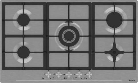 - Пять горелок, включая трехконтурную и WOK, с электроподжигом и газконтролем дают широкий диапазон мощности и безопасное приготовление.