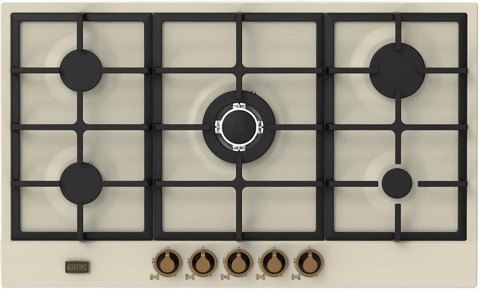 Элегантный ретро-образ в стиле Provence оформлен в мягком слоновоя кости и подчеркнут металлическим шильдом с логотипом KORTING, что делает прибор выразительным акцентом в кухонном интерьере. Эмалированная поверхность гармонично сочетает практичность с винтажной эстетикой: легко очищается, устойчива к пятнам и температурным перепадам, а отсутствие рамки и обработка края создают аккуратный, вровень со столешницей вид при монтаже. Чугунные решетки не только визуально дополняют классический облик, но и обеспечивают надежную опору для посуды разных размеров и формы, включая тяжелые казаны для WOK-конфорки.