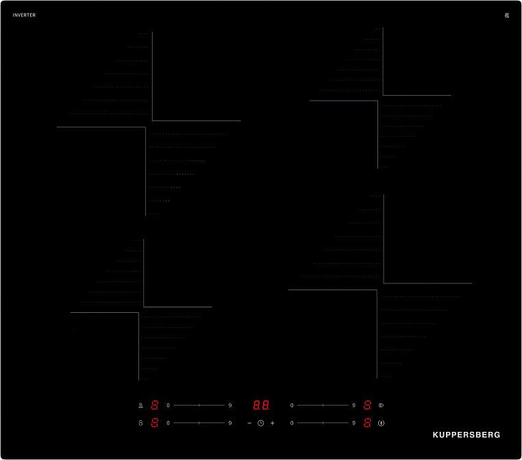 Панель Kuppersberg ICI 606 обладает электронным управлением с сенсорными переключателями и девятью уровнями мощности каждой конфорки. Таймер и функция паузы в приготовлении обеспечивают удобство и гибкость в процессе приготовления пищи. Панель также имеет функцию распознавания наличия посуды, которая автоматически выключает нагрев, если посуда снята с конфорки, что делает ее безопасной и энергоэффективной.