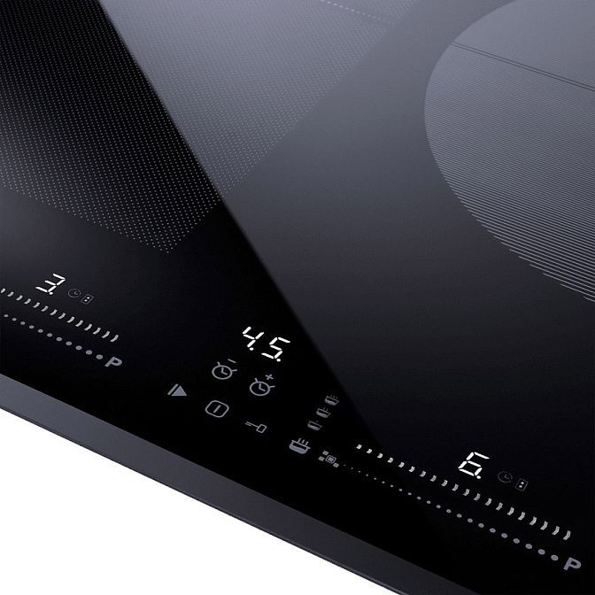 Панель оснащена четырьмя конфорками, которые могут работать в режиме двойной короны. Это означает, что они могут нагреваться быстрее и равномернее, что позволяет вам приготовить пищу быстрее и эффективнее. Все конфорки имеют зоны расширения, что позволяет вам использовать посуду разного размера. Панель также имеет функцию распознавания наличия и размера посуды, что делает ее удобной в использовании.