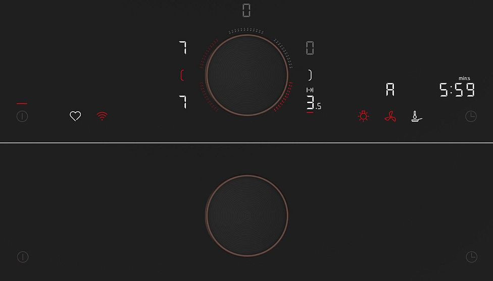 Панель оснащена двумя конфорками с зонами расширения, что позволяет готовить блюда различного размера. Управление панелью осуществляется с помощью сенсорных переключателей, что обеспечивает удобство и простоту использования. Дисплей на лицевой панели позволяет легко контролировать процесс приготовления пищи и выбирать необходимые параметры.