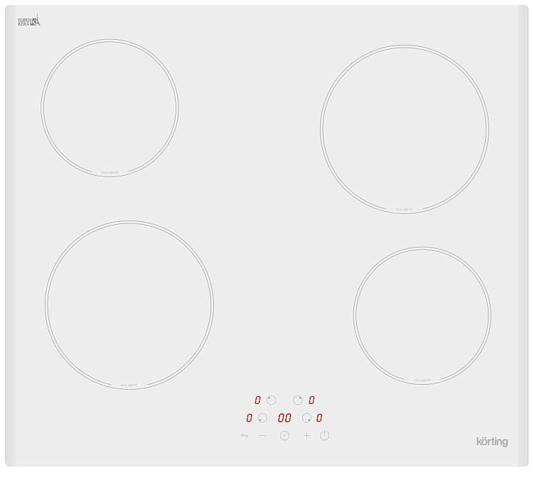 Стеклокерамическая панель Korting HK 60003 BW представляет собой современную белую варочную поверхность, выполненную из стойкого стеклокерамического стекла с скошенными краями и отсутствующей рамкой, что обеспечивает аккуратный и минималистичный внешний вид на кухне. Тонкий корпус с высотой 50 мм и шириной 590 мм легко вписывается в стандартное встраивание шириной 56 см и глубиной 49 см, минимальная толщина столешницы для установки — 30 мм. Передняя панель управления с сенсорными переключателями и цифровым дисплеем сохраняет лаконичность фасада и позволяет быстро управлять параметрами не отвлекаясь от процесса приготовления.