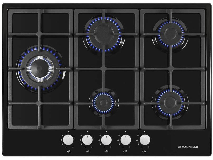 - Пять горелок включая WOK и многоконтурную конфорку, 13-ступенчатая регулировка и мощность до 3,8 кВт для любых задач.