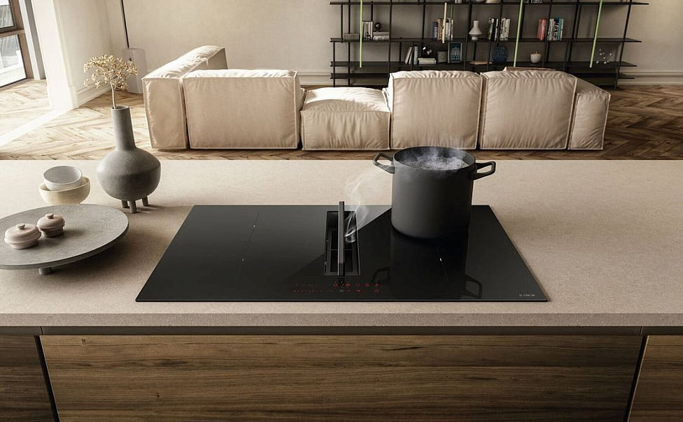 Стильный черный корпус с OptiGlass и дизайн от Fabrizio Cris_ формируют сдержанный современный образ, который легко вписывается в минималистичные и элегантные интерьеры. Поверхность без рамки обеспечивает вровень монтаж со столешницей, визуально расширяя пространство и облегчая уход: гладкое стекло чистится быстрее и не требует сложной обработки краев. Ширина 83 см и глубина 51,5 см дают достаточную рабочую площадь, а аккуратные линии, черный тон и тонкая высота создают впечатление премиального изделия, подходящего для как открытых кухонь, так и встроенных конфигураций. Рамка присутствует, но финиш остается лаконичным и универсальным для разных стилей оформления.