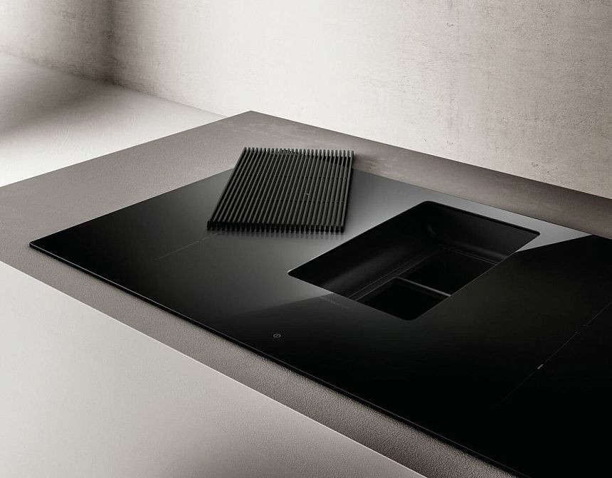 Эта независимая индукционная варочная поверхность с интегрированной вытяжкой представляет собой синтез итальянского стиля и продуманной инженерии, созданный под руководством Fabrizio Cris_. Черная стеклокерамическая панель OptiGlass аккуратно вписывается в современную кухню: рамка и обработанный край обеспечивают аккуратный переход к столешнице при встраивании вровень. Компактные габариты и ниша для монтажа 750x490 мм делают установку простой и предсказуемой, а возможность размещения над столешницей облегчает проектирование кухонного гарнитура.