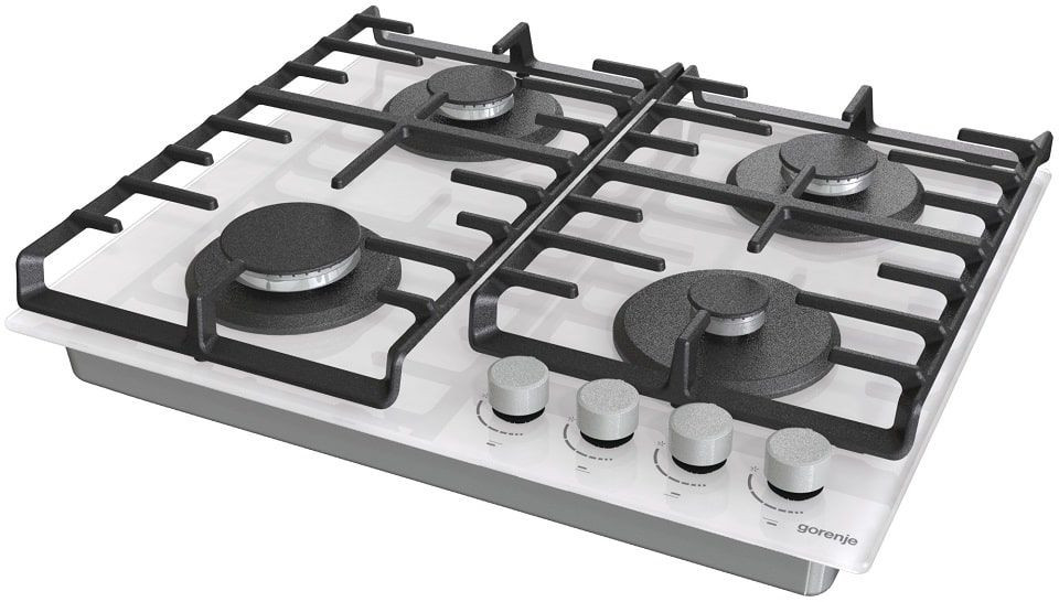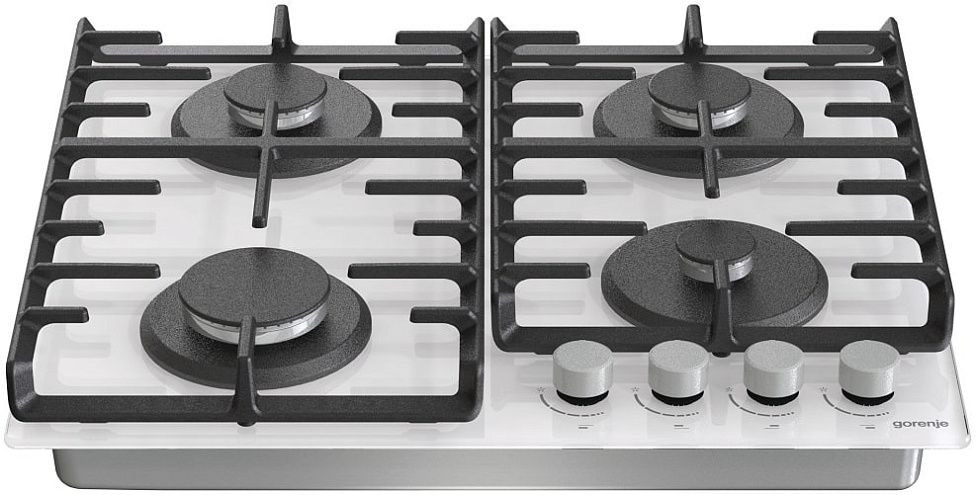 Современная варочная поверхность с белой закаленной стеклянной вставкой создает лаконичный и светлый акцент в интерьере кухни. Скошенные края подчеркивают аккуратную линию и облегчают уход за столешницей, а отсутствие рамки обеспечивает максимально плавный переход к рабочей поверхности. Чугунные решетки придают надежность и устойчивость посуде, их конфигурация рассчитана на комфортное размещение кастрюль и сковород с различным диаметром дна. Передняя панель с поворотными механическими переключателями вынесена вперед для удобного управления и быстрого доступа в процессе приготовления.