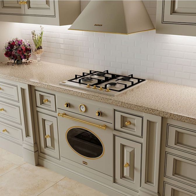 Элегантное оформление в стиле Provence и мягкий слоновая кость создают благородный акцент на кухне, сочетая винтажную эстетику с современными возможностями. Эмалированная поверхность придает изделию устойчивость к повседневным нагрузкам и упрощает уход — пятна и брызги удаляются мягкой губкой без специальных средств. Чугунные решетки обеспечивают надежную опору для посуды и равномерное распределение тепла, при этом съемная подставка WOK позволяет использовать высокую посуду и энергично готовить блюда на специальной конфорке. Наличие шильда добавляет отделке завершенный вид и защищает от случайных повреждений в рабочей зоне.