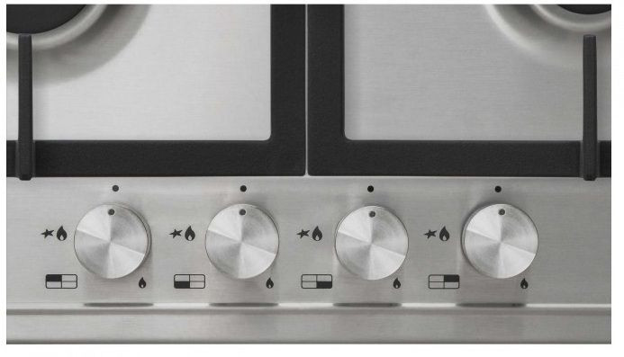 - Четыре горелки, включая WOK и двуконтурную конфорку, с функцией объединения зон и Booster для быстрого нагрева.