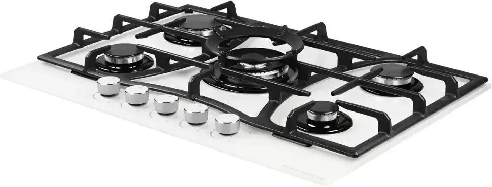 Элегантная варочная поверхность сочетает современный внешний вид и продуманную функциональность: закаленное стекло белого цвета задает стильный тон кухне, а скрытые интегрированные ручки сохраняют ровную линию и удобство в уходе. Чугунные решетки обеспечивают устойчивость посуды и равномерное распределение тепла, сохраняя эстетичный контраст с глянцевой поверхностью. Отсутствие рамки и установка вровень со столешницей создают эффект бесшовного перехода, удобного для плит с толщиной столешницы от 50 мм и для решений в стиле Hi-Tech.