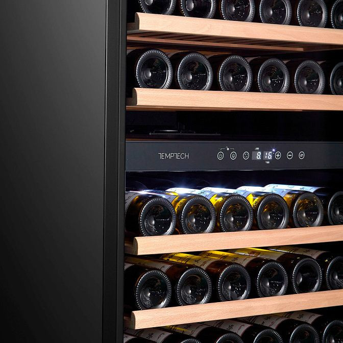 - Сенсорное управление с дисплеем, Wi_Fi через Vinotag и индикацией температуры упрощают мониторинг и настройку.