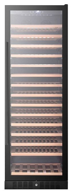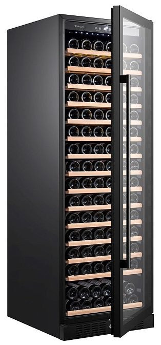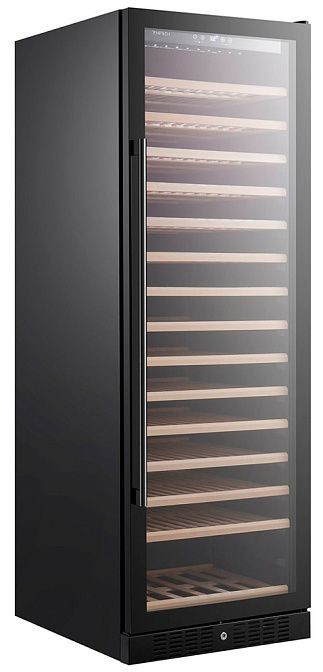 - Монотемпературная камера на 166 бутылок с равномерным распределением охлаждения и сенсорным управлением.