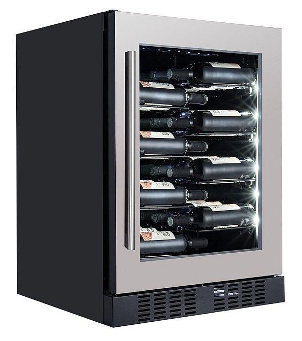 Изящный и строгий внешний вид этой встраиваемой модели подчеркивается сочетанием нержавеющей стали и черных деталей, что делает прибор удачным решением для современных кухонь и барных ниш. Прозрачная стеклянная дверца с трехслойным двойным стеклом и УФ-фильтром сохраняет визуальную связь с содержимым, защищая напитки от вредного излучения и придавая фасаду аккуратную глубину. Ручки из стали и минималистичная лицевая панель с сенсорным управлением создают эргономичный фронт без лишних элементов, а дисплей в камере обеспечивает понятную индикацию температуры и контроль настроек без открытия створки.