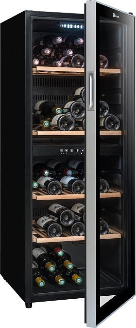 Холодильник оснащен одной прозрачной дверью, что позволяет вам легко увидеть содержимое без необходимости открывать его. Компрессорное охлаждение обеспечивает эффективное и равномерное распределение холода. Общий объем устройства составляет 70 литров, что позволяет хранить до 91 бутылки вина. Сенсорное управление делает использование холодильника простым и удобным, а наличие дисплея и индикации температуры помогает контролировать условия хранения вина.