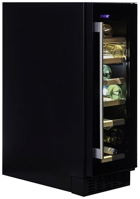 Дизайн холодильника выполнен в элегантном черном цвете, что делает его идеальным дополнением к любому интерьеру. Прозрачная дверь позволяет легко увидеть содержимое, а встроенное освещение подчеркивает красоту винных бутылок. Дверь оборудована замком для безопасности, а стекло дверцы защищено от УФ-лучей, чтобы защитить вино от вредного воздействия солнечного света.