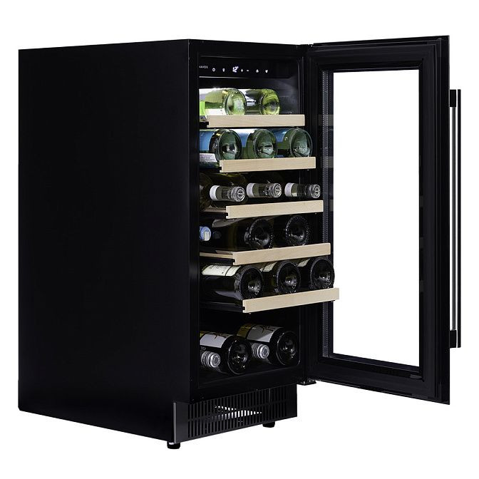 Монотемпературный режим позволяет поддерживать в камере стабильную температуру от +5 до +22 градусов Цельсия, что идеально подходит для хранения большинства видов вина. Вместительность холодильника составляет 83 литра, что позволяет разместить в нем до 32 бутылок. Внутри камеры расположены четыре полки из дерева, что придает интерьеру элегантность и утонченность.