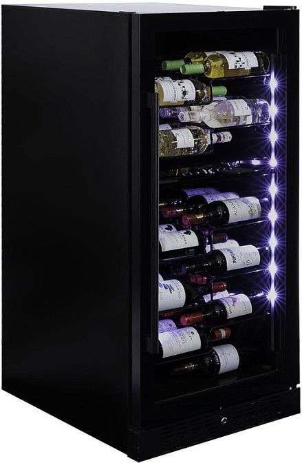 Винный холодильник удобен в использовании благодаря выдвижным полкам из металла. Они обеспечивают легкий доступ к бутылкам и упрощают хранение. Стекло дверцы с защитой от УФ-лучей защищает вино от нежелательного воздействия света.