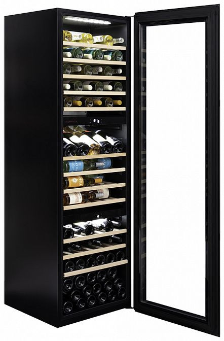 Особенностью данной модели является мультитемпературный режим. Благодаря трем температурным зонам, можно одновременно хранить разные виды вина при оптимальной температуре. Управлять температурой можно с помощью сенсорного панельного дисплея, расположенного внутри камеры. Цифровой термометр позволяет контролировать и поддерживать нужный температурный режим.