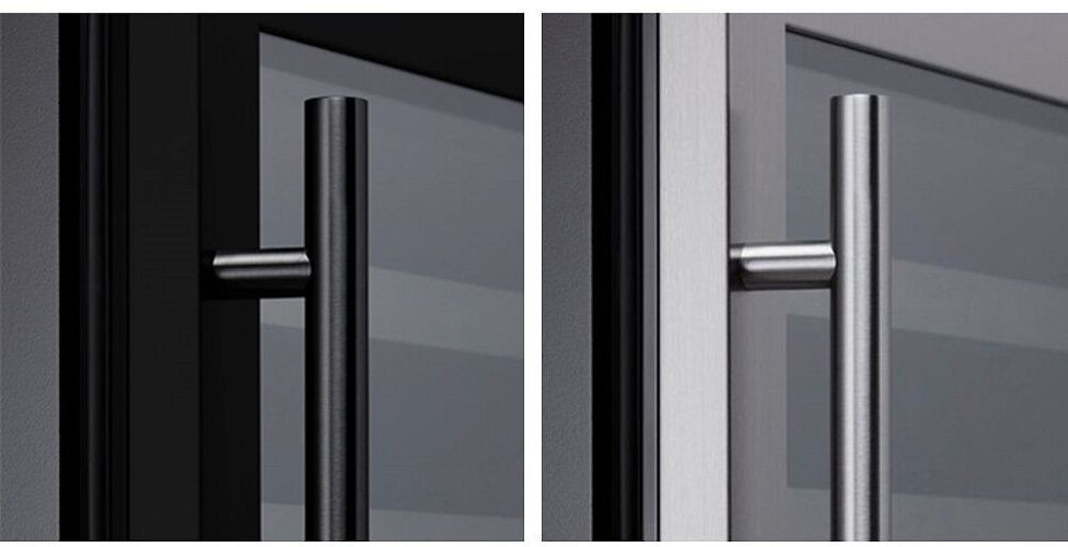 Стекло дверцы обладает защитой от УФ-лучей, что предотвращает влияние солнечного света на качество вина. Полки из дерева добавляют эстетики и удобства при использовании.