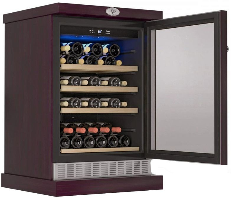 Система полок выполнена из древесины, три выдвижные платформы с направляющими и доводчиками гарантируют аккуратную расстановку бутылок и удобный доступ к коллекции, при этом отсутствуют подвесные упоры и наклонные держатели, что делает конструкцию более универсальной. Наличие индикаторов температуры для холодильного и морозильного отделений, звуковой и оптической сигнализации о неисправностях и сигнализации при открытой дверце обеспечивает контроль и защиту инвестиций в напитки. Автономное сохранение холода до 10 часов и функция суперохлаждения дают запас в случае кратковременного отключения питания или при быстрой подготовке к приему гостей.