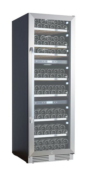 Уникальность этого винного холодильника заключается в его двухтемпературном режиме. Это позволяет хранить разные виды вина при оптимальной температуре. Диапазон установки температуры в верхней и нижней зоне составляет от +5 до +20 градусов Цельсия, что делает этот холодильник универсальным решением для любого вина.