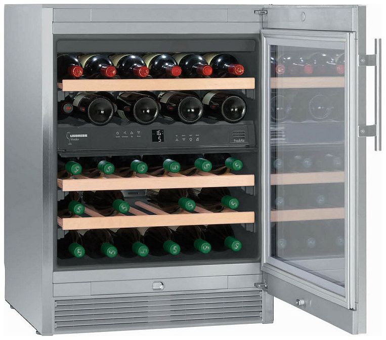 Внутри холодильника находятся три полки на телескопических направляющих, выполненные из дерева. Это не только придает устройству элегантный вид, но и обеспечивает надежное хранение бутылок. Устройство также оснащено эргономичной ручкой из нержавеющей сталь, ЖК-дисплеем и цифровым термометром для удобства использования и контроля за температурой.