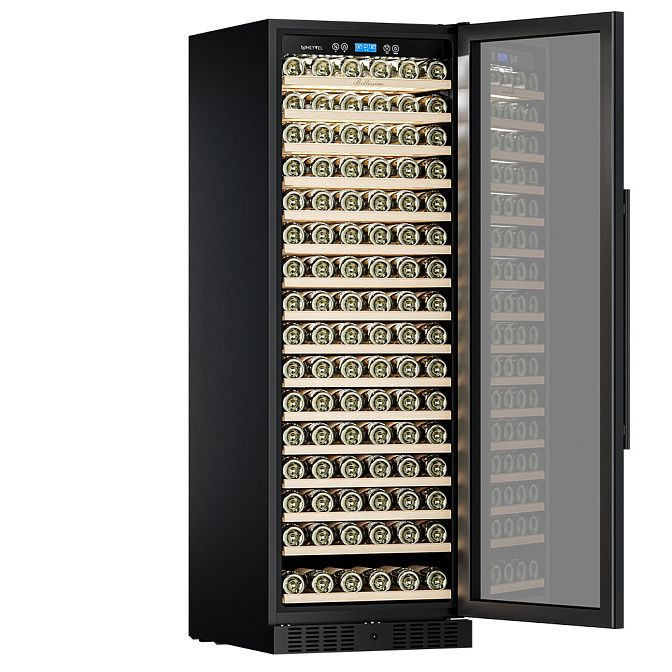 Модель отличается своими впечатляющими размерами и вместимостью. Габариты составляют 176,9x59,5x68,5 см, что позволяет вместить внутри до 186 бутылок. Однако, несмотря на свои размеры, холодильник имеет возможность встраивания, что позволяет легко интегрировать его в любой интерьер. Кроме того, двери данной модели перевешиваемые и открываются вправо, что обеспечивает удобство использования.