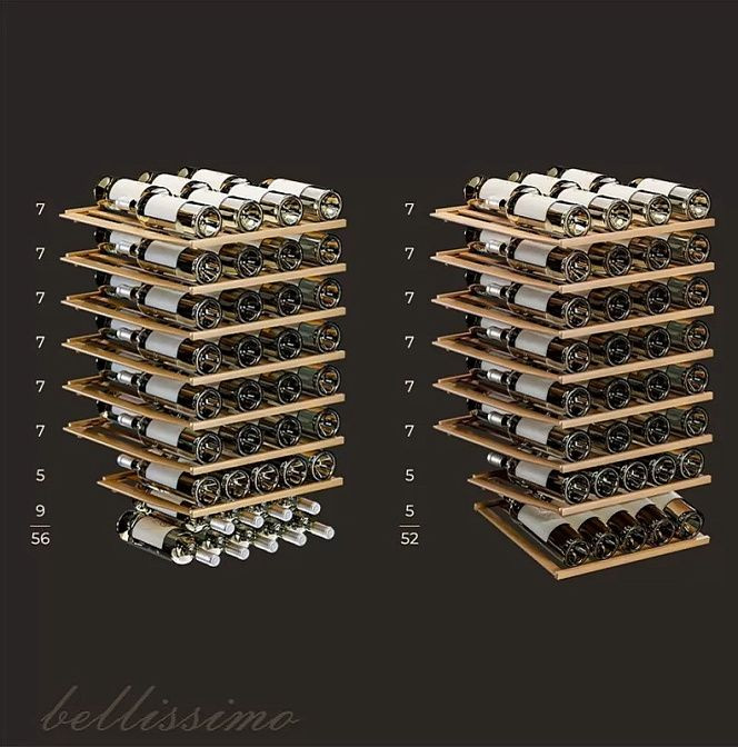 - Монотемпературный режим и вместительность до 52 бутылок.