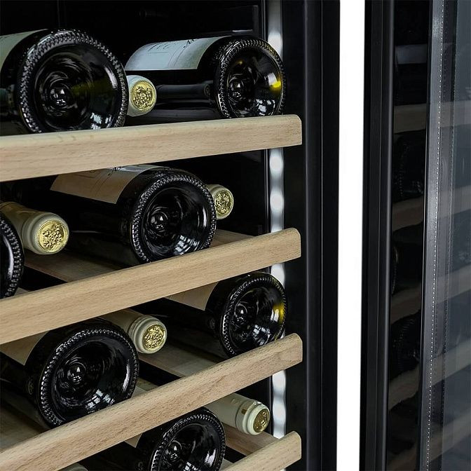 - Высокая вместимость: возможность хранить до 66 бутылок вина.