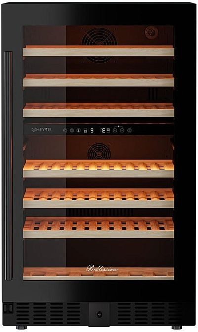 Винный холодильник Meyvel MV77PRO KBT2 — это не только функциональное, но и эстетически привлекательное устройство. Черный цвет корпуса и ручек, стильные полки из черного дерева и дверь с двойным стеклом создают элегантный и современный образ, который будет гармонично смотреться в любом интерьере.