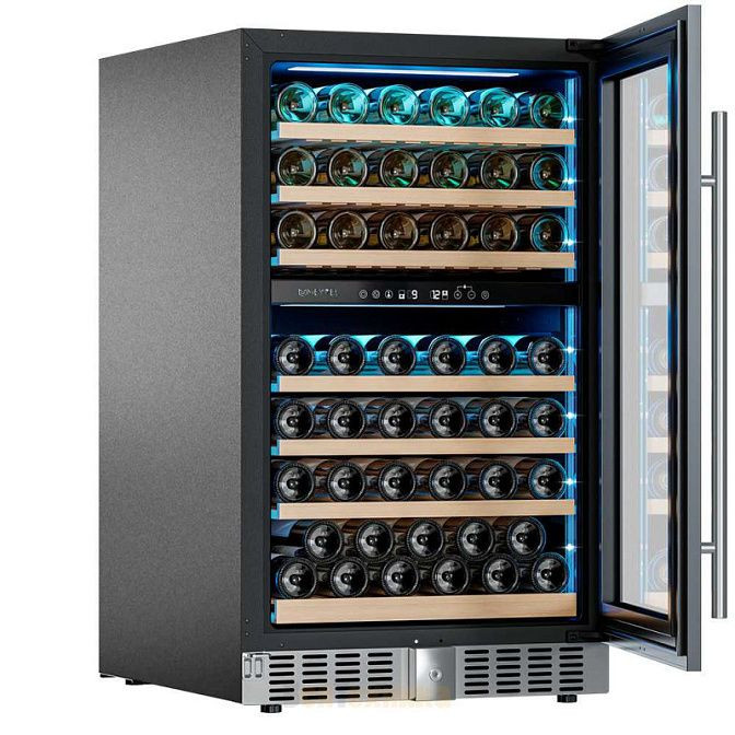 - Двухтемпературный режим для идеальных условий хранения вина.