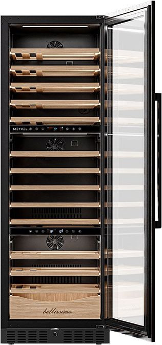Винный холодильник Meyvel MV98-KBT3 Slim сочетает в себе элегантный дизайн, функциональность и надежность, что делает его незаменимым помощником в поддержании идеальных условий для хранения вина.