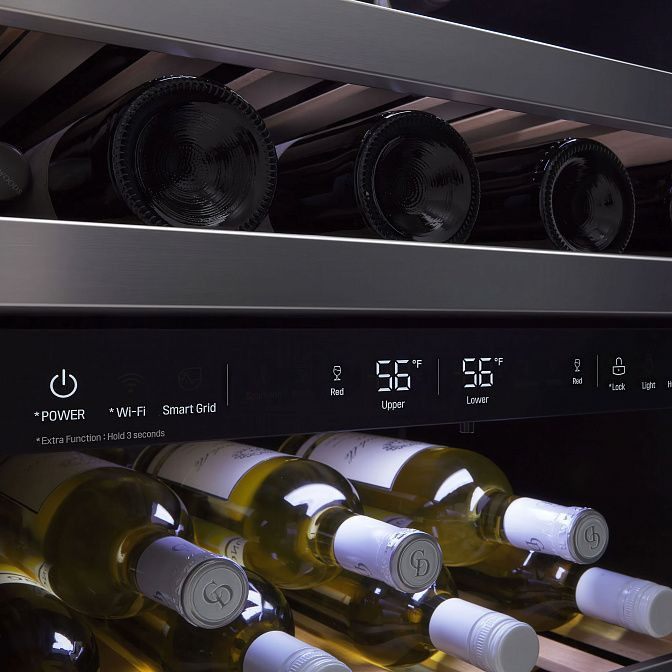 Эргономичная и строгая внешность в сочетании с продуманной функциональностью создают технику, которая органично впишется в современную интерьерную композицию. Черный металлический корпус подчеркивает статус и лаконичность, а прозрачная дверь из двойного стекла с защитой от УФ-лучей демонстрирует содержимое и одновременно защищает бутылки от вредного излучения. Ручки из стали черного цвета и аккуратная панель управления на корпусе с цифровым дисплеем сохраняют эстетическую целостность фасада, при этом реализована функция Touch Open для бесконтактного доступа.