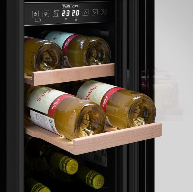 - Две независимые температурные зоны с точным цифровым управлением обеспечивают оптимальные условия для разных сортов вин.
