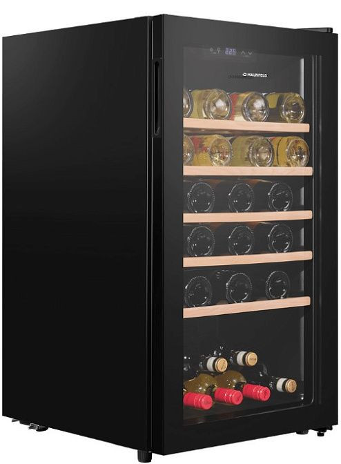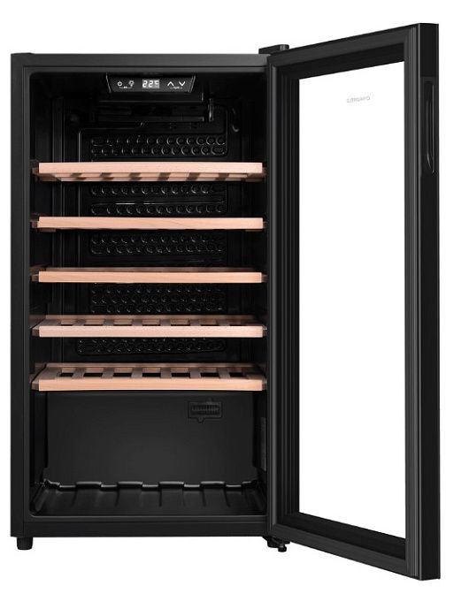 Внутренняя организация продумана для коллекции до 56 бутылок: полезный объем камеры составляет 124 литра, внутри размещено пять съемных и выдвижных полок из бука, что обеспечивает удобный доступ и гибкость при расстановке емкостей разного формата. Встроенный вентилятор совместно с циркуляционным охлаждением равномерно распределяют охлажденный воздух, поддерживая стабильный микроклимат; классический компрессор и экологичный хладагент R600a гарантируют эффективное функционирование, а электронная панель на корпусе позволяет точно регулировать температурный интервал от +5 до +20 °C. Наличие акустической и оптической сигнализации оперативно информирует о любых отклонениях, а возможность перевешивания дверей и правый дверной упор расширяют варианты размещения в помещении.