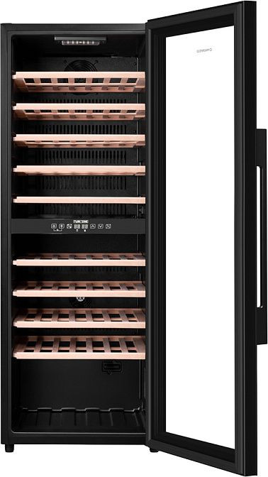 Шкаф способен вместить до 77 бутылок, что делает его идеальным решением для винных коллекционеров или любителей вина. Съемные и выдвижные полки облегчают управление вашей коллекцией вин. Стекло дверцы с защитой от УФ-лучей защищает вино от нежелательного воздействия солнечного света.