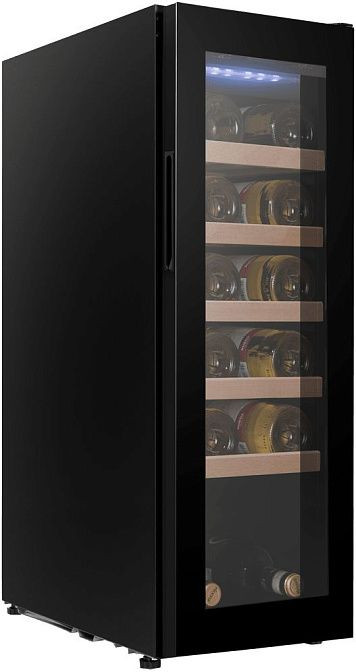 Техника обладает защитой от детей, что делает ее использование безопасным в семьях с маленькими детьми. Скрытые ручки и светодиодная подсветка придают шкафу изысканный вид. Стекло дверцы с защитой от УФ-лучей обеспечивает дополнительную защиту для вина от внешних воздействий.