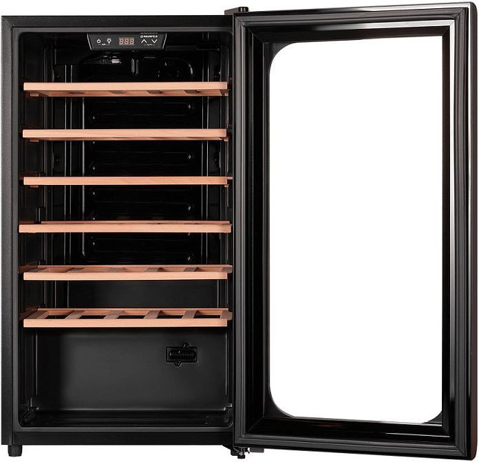 Управление винным шкафом осуществляется с помощью сенсорных переключателей, расположенных на корпусе. На дисплее отображается текущая температура внутри шкафа, а также активированные режимы работы. Благодаря защите от детей, вы можете быть уверены, что настройки шкафа не будут случайно изменены.