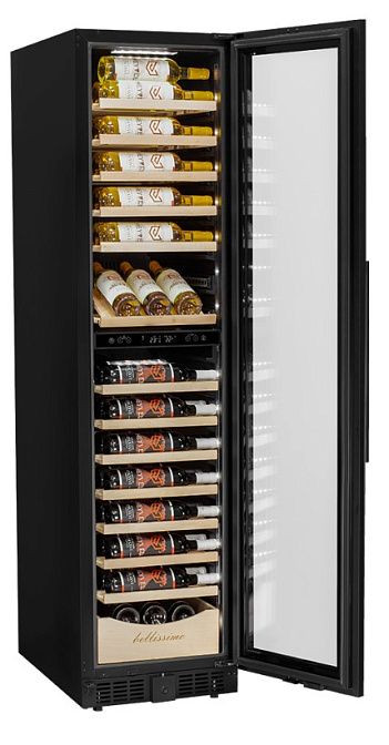 Элегантный черный корпус с комбинированной дверью из стали и стекла делает прибор идеальным элементом современной кухни или демонстрационной зоны. Панорамное остекление с защитой от УФ-лучей и двойным стеклом сохраняет эстетичный вид и защищает коллекцию от вредного излучения, а жесткое крепление двери по системе door on door обеспечивает аккуратную интеграцию при встраивании. Конструкция допускает как отдельностоящую установку, так и монтаж в нишу с указанными размерами, при этом возможна перенавешиваемая конфигурация с открыванием вправо.
