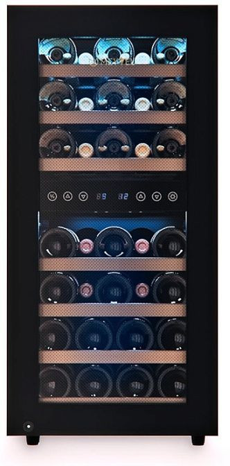 - Компактная двухзонная конструкция с точной сенсорной регулировкой обеспечивает стабильное хранение вин при двух независимых температурах.
