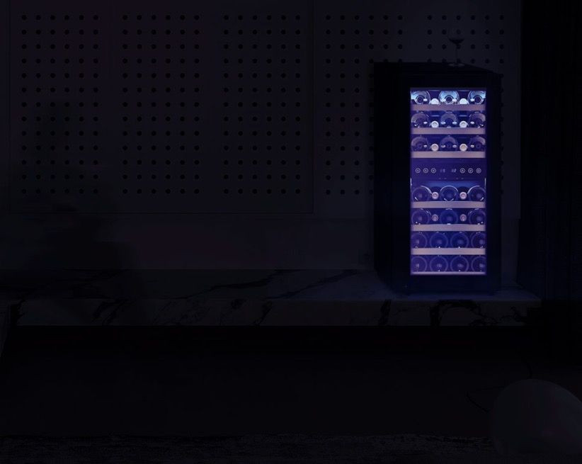 Элегантный прибор в черном корпусе сочетает компактность и функциональность, предлагая аккуратный внешний вид и продуманную внутреннюю организацию. Прозрачная стеклянная дверь с двойным слоем и защитой от УФ-лучей демонстрирует коллекцию, сохраняя внешний стиль и минимизируя воздействие солнечного излучения. Металлические боковые стенки обеспечивают надежную опору конструктиву, а хромированная полка для бутылок и бежевые деревянные полки добавляют интерьеру теплоты и благородства. Модель выполнена как отдельностоящая, но предусматривает вариант встраивания, что дает свободу расположения в кухне или гостевой зоне без ущерба для дизайна.