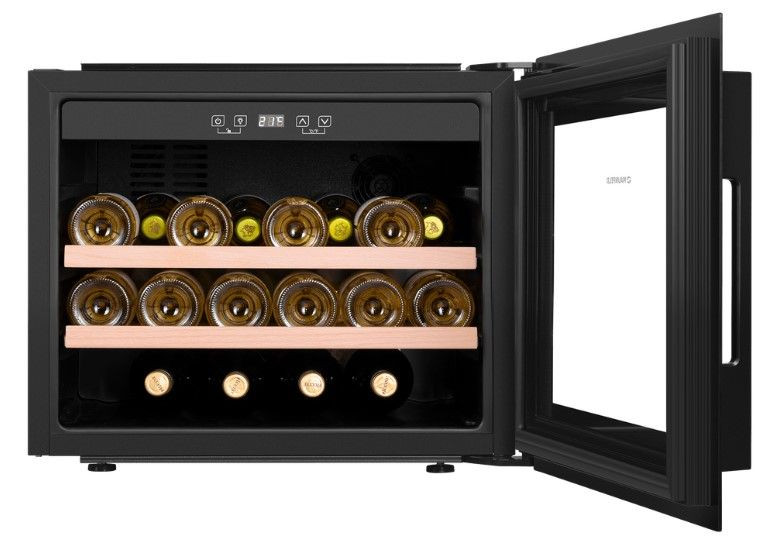 Благодаря сочетанию черного оформления, стеклянной фасадной панели и натуральных деревянных полок модель гармонично впишется в современные кухонные проекты, барные зоны или нишевые решения. Продуманная эргономика обеспечивает удобство раскрытия и вынимания бутылок, а качественное охлаждение сохраняет структуру и аромат напитков. Этот прибор идеален для тех, кто ищет сочетание стиля, функциональности и экономичности в ограниченном пространстве.