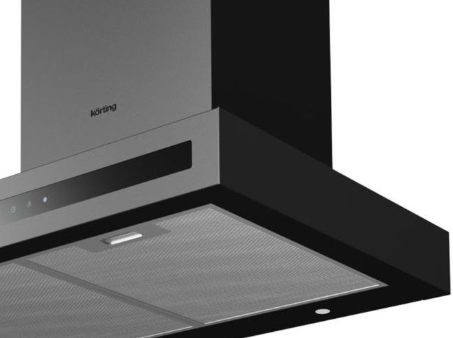 - Чёрный металлический корпус с декоративным коробом и выдвижной панелью создаёт современный облик и легко интегрируется в разные кухонные интерьеры.