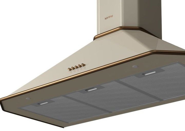 Вытяжка Korting KHC 9839 RB — стильное купольное настенное решение с ретро-эстетикой и продуманной инженерией, созданное для тех, кто ценит сочетание классики и современных технологий. Корпус из металла в декоративных оттенках «слоновая кость» и бронзы формирует выразительный акцент на кухне, а выдвижная панель дополнительно обеспечивает аккуратный внешний вид и удобство эксплуатации. Декоративный короб окрашен в слоновую кость, что позволяет органично вписать прибор в светлую или контрастную интерьерную палитру. Встроенные элементы управления расположены сбоку и выполнены кнопочными регуляторами механического типа, обеспечивая интуитивное управление мощностью на трёх ступенях и переключение между режимами отвода и рециркуляции.