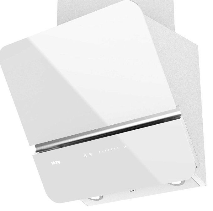 Наклонная настенная конструкция выполнена в современном стиле и сочетает металл и стекло, при этом корпус окрашен в белый цвет с эффектной окантовкой из черного стекла, что создает выразительный контраст и делает прибор заметным элементом кухонного интерьера. Продуманная форма обеспечивает удобство монтажа и комфорт при эксплуатации: наклонная панель освобождает рабочую зону и улучшает доступ к варочной поверхности. Габариты 176,9x54x54,5 см позволяют интегрировать модель в разные планировки, а упаковочные размеры 57x68x48 см облегчают транспортировку и хранение перед установкой.