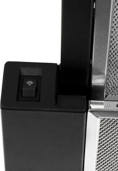 В основе работы лежат два мотора с суммарной эффективностью, обеспечивающей до 650 куб.м/ч при отводе воздуха и до 350 куб.м/ч в режиме рециркуляции; прибор оснащен тремя рабочими скоростями и отдельной интенсивной ступенью для быстрого удаления сильных загрязнений. На первой скорости производительность составляет 150 м3/ч, на второй — 240 м3/ч, на интенсивной — 385 м3/ч; рекомендованная площадь помещения — около 35 кв.м. Управление выполнено механически посредством бокового регулятора SliderTouch, что обеспечивает точную настройку мощности без лишних элементов. Для контроля состояния фильтров предусмотрен индикатор загрязнения, а система Perimeter обеспечивает направленный поток воздуха по контуру панели для более равномерного улавливания паров и жира.