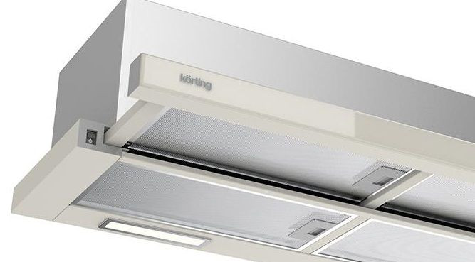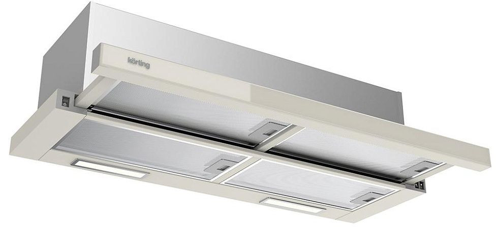 Элегантный прибор в бежевом оформлении сочетает металл и стекло, предлагая современную эстетику для кухни с аккуратными линиями и выдвижным козырьком. Узкая конструкция высотой 26,5 см и шириной 89,8 см позволяет встроить модуль в шкаф или оформить как подвесной элемент, сохранив чистоту внешнего вида и свободное пространство. Панель выдвигается при необходимости, обеспечивая удобный доступ к элементам управления, расположенным сбоку: механические слайдеры обеспечивают интуитивное переключение трех ступеней без сложных настроек, а антивозвратный клапан сохраняет стабильность работы воздуховодов и препятствует обратному потоку запахов.
