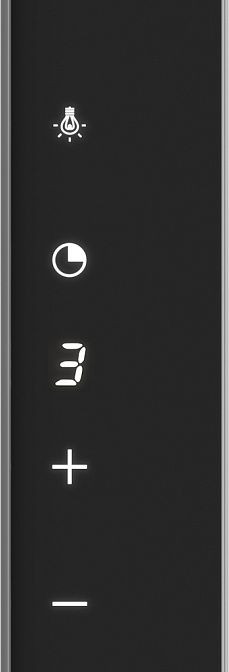 Управление вытяжкой осуществляется с помощью сенсорных переключателей, расположенных спереди на панели управления. Это обеспечивает удобство и простоту использования. Дисплей позволяет быстро и легко выбрать необходимые настройки. Также в модели предусмотрен таймер, что позволяет точно контролировать время приготовления пищи.
