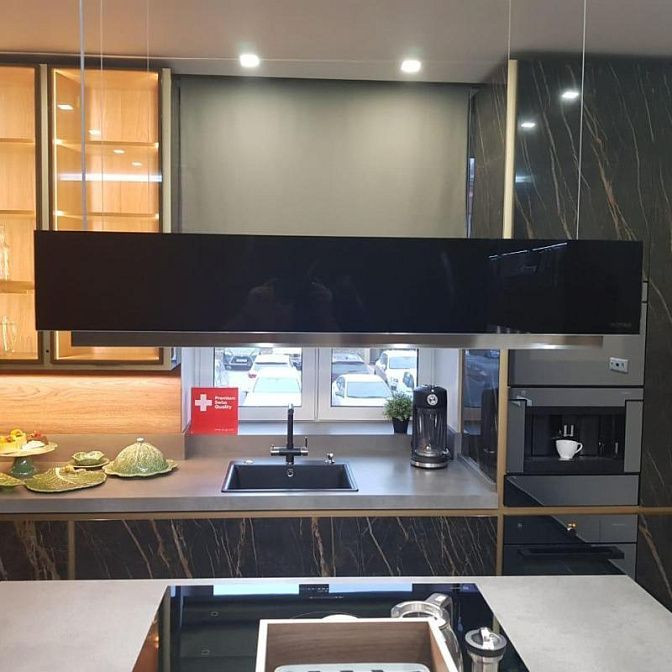 Вытяжка Falmec Levante 120 оснащена электронным управлением и сенсорными переключателями, что делает ее использование максимально удобным и простым. На передней панели расположен дисплей, который позволяет контролировать все функции устройства. С его помощью можно установить таймер, выбрать необходимую мощность и контролировать работу устройства.